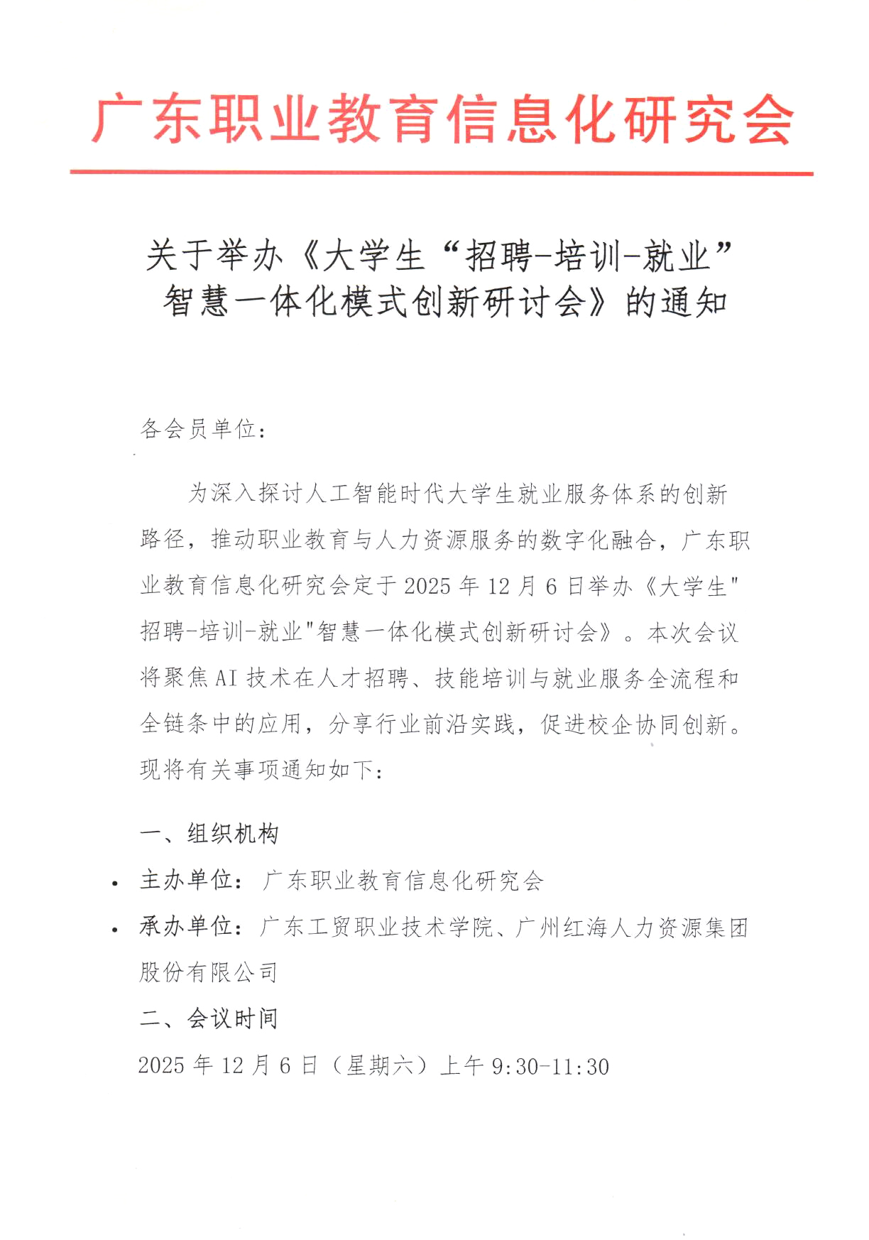 关于举办《大学生“招聘-培训-就业”智慧一体化模式创新研讨会》的通知