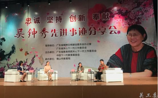 4月26日上午,由广东省文明办和关工委指导、广东省教育系统关工委和中国下一代教育基金会主办、佛山市教育局承办的吴钟秀先进事迹首场分享会在佛山举办。